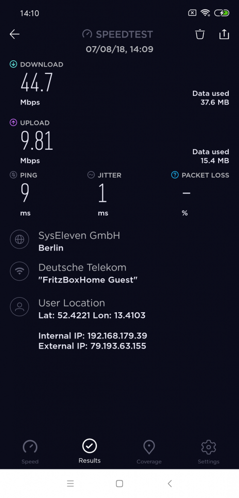 Hier ist alles verbaut, was das Herz begehrt. Das Dual-Band WiFi kommt mit den Standards Wi-Fi 802.11 a/b/g/n/ac und Low Energie Bluetooth ist in der Version 5 vorhanden. Das A2DP (Advanced Audio Distribution Profile) Profile wird auch unterstützt. Weder beim Down- noch beim Upload konnte ich Probleme feststellen und ich habe immer die maximal verfügbare Bandbreite erreicht. USB-C gehört natürlich als Anschluss dazu, aber leider fehlt der 3.5 Klinke-Anschluss. Auch ist kein NFC-Chip enthalten. Jetzt wo sich langsam das Mobile bezahlen durchsetzt, sollte dies in jedem neuen Smartphone verbaut sein.
